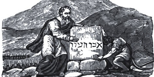 〈撒母耳記上〉 7:12 撒母耳將一塊石頭立在米斯巴和善的中間,給石頭起名叫以便以謝,說:「到如今耶和華都幫助我們。」