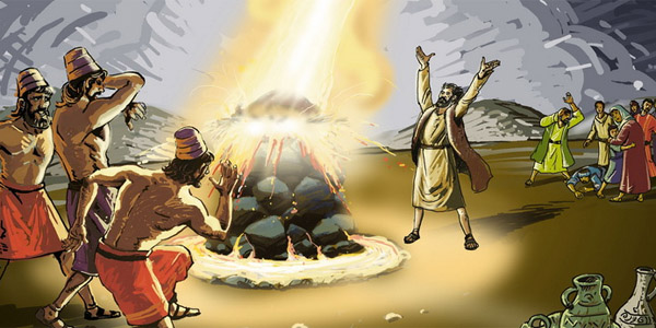 所以設立祭壇要十二塊石頭代表以色列支派,提醒以色列人他們都是雅各的子孫,這十二個支派在神的眼裡,一個支派都不可失去,才能做成一個完整的祭壇。並且他提醒以色列的子民,這位耶和華神就是亞伯拉罕、以撒、雅各的神,就是他們列祖的神,也就是以色列人當敬拜的神。以利亞一禱告完,耶和華降下火來,燒盡燔祭、木柴、石頭、塵土,又燒乾溝裡的水。以利亞只是做了一個禱告就有火降下,巴力的先知呼叫了一整天,卻什麼動靜都沒有。究竟哪個才是真神?以色列人看了,就俯伏在地,說:“耶和華是神!耶和華是神!”這就是以利亞費那麼大勁要達到的結果:以色列人必須知道誰是真神,不管有哪個王引誘他們去拜偶像,他們都當立定心意,不要再被引誘。