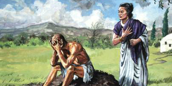 最令约伯难过的,可能是他的妻子对他信仰的讥笑:“你仍然持守你的纯正吗?你弃掉神,死了吧!”约伯一生敬畏神,他的神却因他的病而被妻子看轻,这更令他难受。因此他说:“你说话像愚顽的妇人一样。哎!难道我们从神手里得福,不也受祸吗?”这是约伯的认识,他不仅相信他的一切是神所赐,所以神有权赐下或收回;他也明白自己肉体的主权在神不在他,所以人从神得福,也有可能受祸。所以我们要有预备心,人生不如意事十常八九,不要太难过。要记得不管在任何的境况中,神都与我们同在,一起承担。