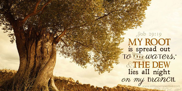 “树根长到水边”,树根时时有水供应,树必然长得青翠茂盛;“露水终夜沾在我的枝上”,时时得到从上而来的滋润,使枝叶充实饱满。他的荣耀一天比一天增加,他的弓在手中日强,弓代表他的能力。壮年的约伯真是意气风发。不管到哪里都赢得人的尊敬。他的成功使人渴望从他受教。人总是习惯向成功者求教,有谁会向失败者学习呢?