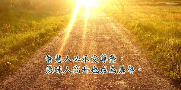 〈箴言〉3:35 智慧人必承受尊榮,愚昧人高升也成為羞辱。