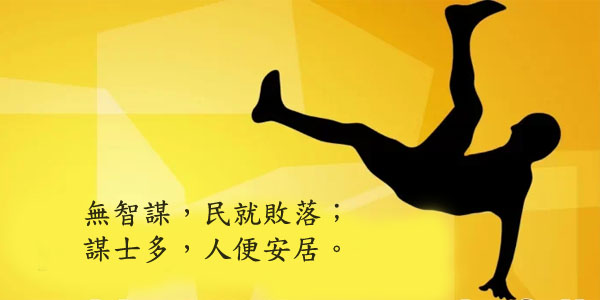 〈箴言〉11: 14 無智謀,民就敗落;謀士多,人便安居。