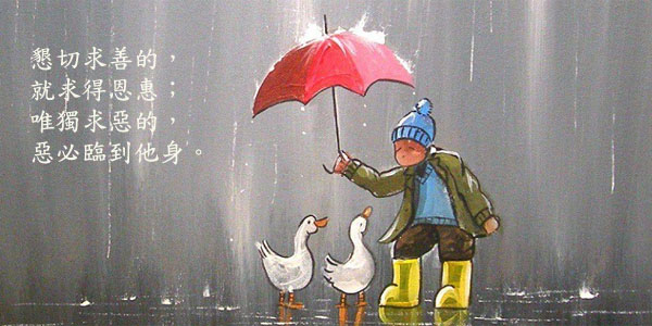 27節:懇切求善的,就求得恩惠;惟獨求惡的,惡必臨到他身。