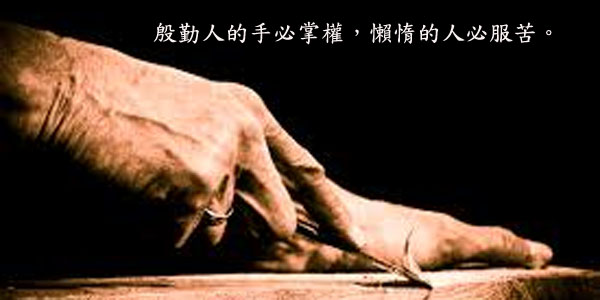 〈箴言〉12:24 殷勤人的手必掌權,懶惰的人必服苦。