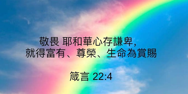 箴言22:4 敬畏耶和華心存謙卑,就得富有、尊榮、生命為賞賜。
