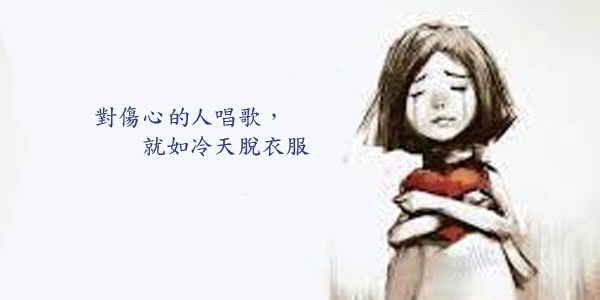 「对伤心的人唱歌,就如冷天脱衣服。」(箴言二十五:20a)