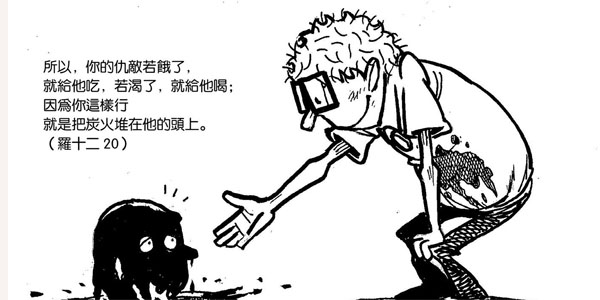「你的仇敌,若饿了就给他饭吃,若渴了就给他水喝。因为你这样行,就是把炭火堆在他的头上,耶和华也必赏赐你。」(箴言二十五:21-22)