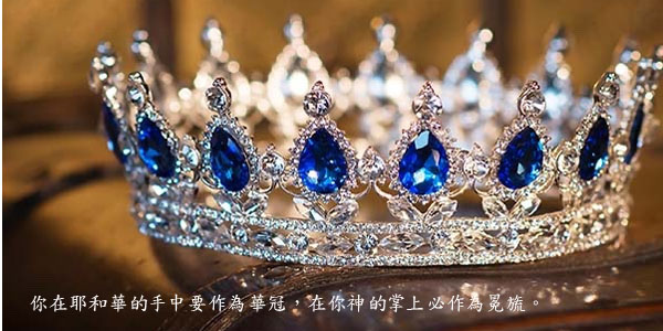 以赛亚书62: 3 你在耶和华的手中要作为华冠,在你神的掌上必作为冕旒。