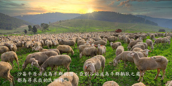 以賽亞書65:10 沙崙平原必成為羊群的圈,亞割谷必成為牛群躺臥之處,都為尋求我的民所得。