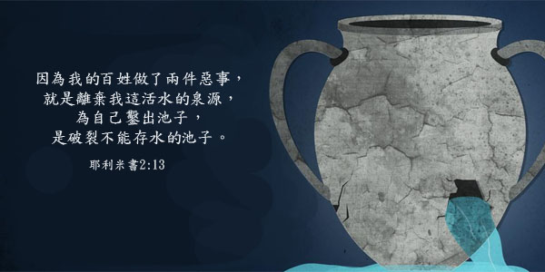 耶利米書2:13  因為我的百姓做了兩件惡事,就是離棄我這活水的泉源,為自己鑿出池子,是破裂不能存水的池子。