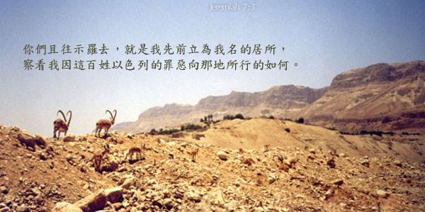 12 「你們且往示羅去,就是我先前立為我名的居所,察看我因這百姓以色列的罪惡向那地所行的如何。」 13 耶和華說:「現在因你們行了這一切的事,我也從早起來警戒你們,你們卻不聽從,呼喚你們,你們卻不答應。 14 所以,我要向這稱為我名下、你們所倚靠的殿,與我所賜給你們和你們列祖的地施行,照我從前向示羅所行的一樣。 15 我必將你們從我眼前趕出,正如趕出你們的眾弟兄,就是以法蓮的一切後裔。」