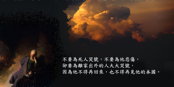 10 『不要為死人哭號,不要為他悲傷,卻要為離家出外的人大大哭號,因為他不得再回來,也不得再見他的本國。 11 因為耶和華論到從這地方出去的猶大王約西亞的兒子沙龍,就是接續他父親約西亞做王的,這樣說:他必不得再回到這裡來, 12 卻要死在被擄去的地方,必不得再見這地。