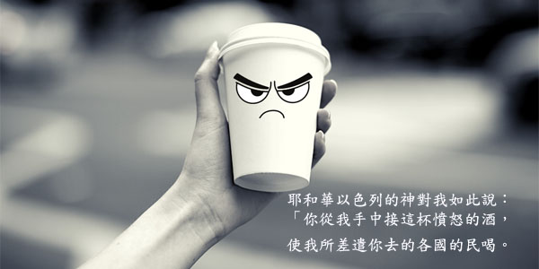 創造天地,賜人生命的神,為何要離開隱密處像獅子一樣,向眾人噴吐祂猛烈的怒氣?為何要讓人喝祂那杯憤怒之酒?豈不是像在挪亞時候一樣,眾人的罪使祂忍無可忍嗎?祂要再一次翻天覆地,重新整頓這個離祂越來越遠的世界。我們要怎樣才能避免這杯憤怒的酒呢?