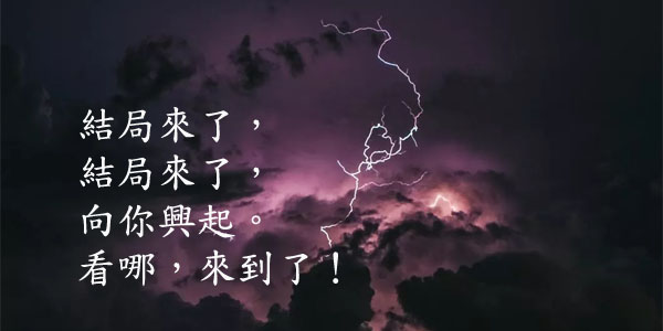 以西結書 7:6 結局來了,結局來了,向你興起。看哪,來到了!