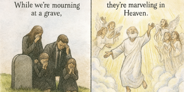 In God’s plan, every life is long enough and every death is timely. And though you and I might wish for a longer life, God knows better. And this is important: though you and I may wish a longer life for our loved ones who have gone on before us, they don’t. Ironically, the first to accept God’s decision of death is the one who dies. You see, while we’re mourning at a grave, they’re marveling in heaven. While we’re questioning God, they’re praising God!