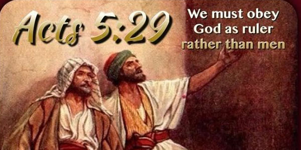 What can we learn from this? Generally speaking we must respect and submit to those in authority over us, believing that God has sovereignly chosen them to lead us. But when human authorities command us to do something that is contrary to what God commands us to do, we must submit to God rather than submitting to those human authorities. As Peter says in verse 29, “We must obey God rather than men!”