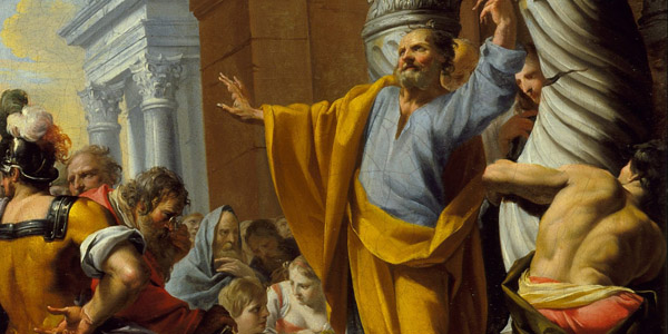 Persuaded by Gamaliel’s argument, the Sanhedrin decides not to put the apostles to death. Instead, they have the apostles flogged (i.e. the apostles are asked to kneel and expose their bare chests, and then they are whipped, once on the chest and then twice on the back over and over until the total number of whips amounted to 39. According to historians, some people were known to have died from flogging, although in this case it seems all the apostles survived.) After flogging the apostles, the Sanhedrin lets them go, ordering them again not to preach the name of Jesus.