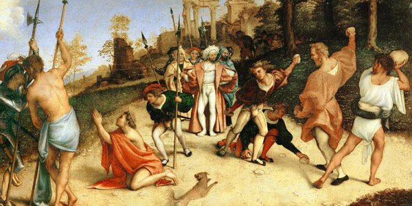 On verses 54-60: At the end of his speech, while his accusers are raging with anger, Stephen looks up to heaven and sees a vision of the glory of God with Jesus standing at God’s right hand. He points that out to his accusers, and his accusers lose it. They drag him out of the city and stone him, leaving their cloaks at the feet of Saul so as not to get them wrinkled or bloodied. Stephen prays for the Lord Jesus to receive his spirit and for the forgiveness of his killers before falling asleep.