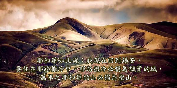 但是有一天,在餘民眼中看為稀奇的事必然發生。因為這是萬軍之耶和華說的,祂怎樣說,事情也必怎樣成就。因此我們相信,有一天,耶路撒冷必成為大君彌賽亞之城,和平之君必然在其中,使耶路撒冷成為信實之城。
