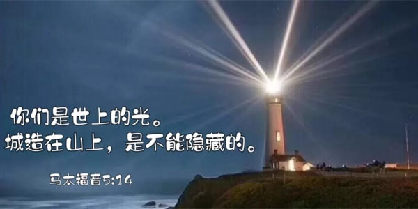 馬太福音5:14-16 你們是世上的光。城造在山上,是不能隱藏的。 15 人點燈,不放在斗底下,是放在燈臺上,就照亮一家的人。 16 你們的光也當這樣照在人前,叫他們看見你們的好行為,便將榮耀歸給你們在天上的父。
