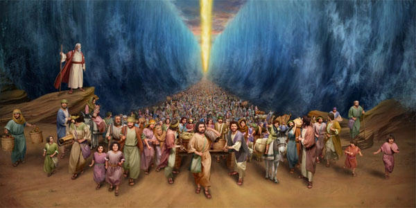神降下災害在埃及地,迫使法老容許以色列人出埃及。逾越節過後,以色列人帶著羊群、牛群,還有向埃及人要的金器、銀器、衣裳、財物,從蘭塞起行,往疏割去;除了婦人孩子,步行的男人約有六十萬。正滿了四百三十年的那天,耶和華的軍隊都從埃及地出來了(出12:31-41)。