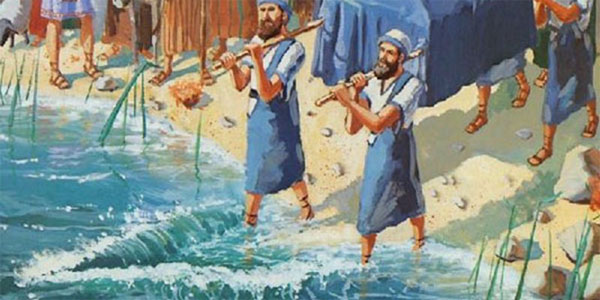 以色列人從摩押地的什亭前進,預備渡過約旦河,抬耶和華約櫃的祭司在百姓前頭,腳一入水,那從上往下流的水便在極遠之地停住,立起成壘,下流的水全然斷絕。抬約櫃的祭司在約旦河中的乾地站定,直到以色列眾人盡都過了約旦河(書3:10-17),進入神應許的迦南地。