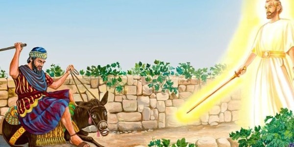 巴蘭早晨備上驢,帶著僕人和摩押的使臣前去。在路上他的驢子三次看見天使站在前方,於是跨進田間、擠傷巴蘭的腳、臥在巴蘭底下不走,巴蘭卻看不到天使,因此發怒,用杖打驢。最後,驢子說話,告訴巴蘭它看見了天使,這讓巴蘭感到驚訝和恐懼。神讓巴蘭的眼目明亮,對他說:「你為何三次打驢呢?我出來敵擋你,因你所行的,在我面前偏僻。」又說:「你同這些人去吧!你只要說我對你說的話。」