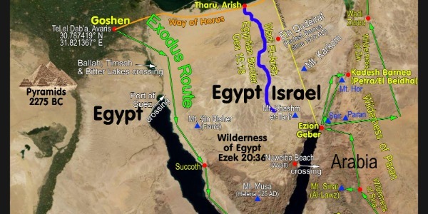 以色列人出埃及往迦南地,可选择古代由埃及穿越肥沃月弯到巴比伦的主要道路,也就是沿着地中海岸(书珥旷野)北上,穿过巴勒斯坦南部的非利士地,然后再顺着耶斯列谷进入迦南地。这条非利士地的道路是出埃及的最短路径,只需要两个星期的路程即可进入迦南。