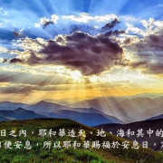 神称水以上的空气为天,又为天舖了许多美丽,变化无穷的云朵。借着看天色,我们可以预测观察是否要下雨了,或是个大太阳天;出门时是否要带把伞,或是涂防晒油。主耶稣也教导我们看天色,来分辨时代的征兆。