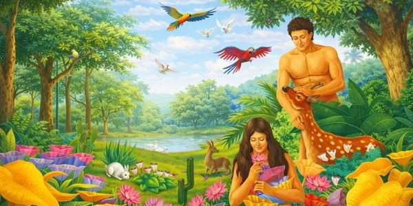 亞當和夏娃被造,是為了生養眾多,遍滿地面,治理這地,也要管理海裡的魚、空中的鳥和地上各樣行動的活物。神把菜蔬和有核的果子給他們做為食物。