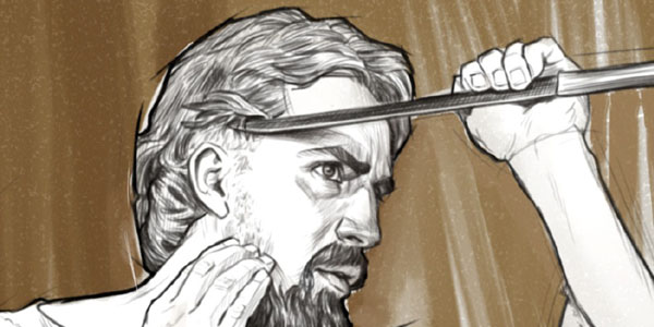 1 “Now, son of man, take a sharp sword and use it as a barber’s razor to shave your head and your beard. Then take a set of scales and divide up the hair.