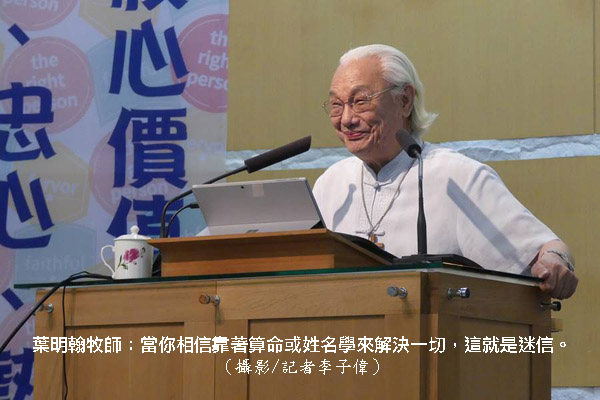 「好名字會有好命運嗎?」曾經是算命仙的葉明翰牧師在台南成功教會分享信息時,娓娓道出他的觀點:姓名學是華人民俗的一種學問,為人取名,聖經也有根據,但一般人若是將一生的幸福快樂全寄託在這套理論上,那就會被撒但控制,變成一種迷信。