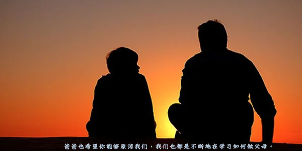 我:爸爸和媽媽都對你寄託了厚望,也許,這會對你有些壓力,有的時候,我們的方法也不太好,態度有點急。爸爸也希望你能夠原諒我們,我們也都是不斷地在學習如何做父母。