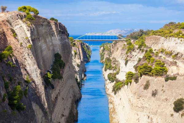 1891年,法國的工程師花了13年的時間,開鑿一條貫穿亞得里亞海與愛琴海,長6.3公里、深80公尺、號稱世界上最深邃的運河,可搭遊艇欣賞亞得里亞海,又能玩高空彈跳。