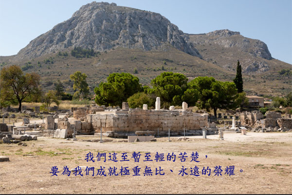 如今哥林多新城整潔美麗,還是提煉石油的重要港口,海濱綠蔭大道上商店林立,鮮花處處,巴士開回雅典方便又快捷。這一趟哥林多老城之旅,讓我對哥林多書信,有了更深刻的理解和感動;感謝神的恩典,使我能夠完成這一趟夢想之旅。