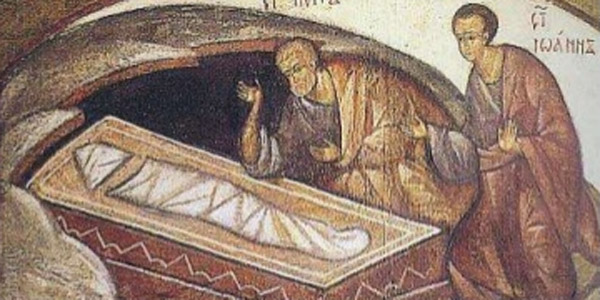 週日清晨,天還黑的時候, ·抹大拉的馬利亞走到墓前,發現石頭已經從入口被滾開了。