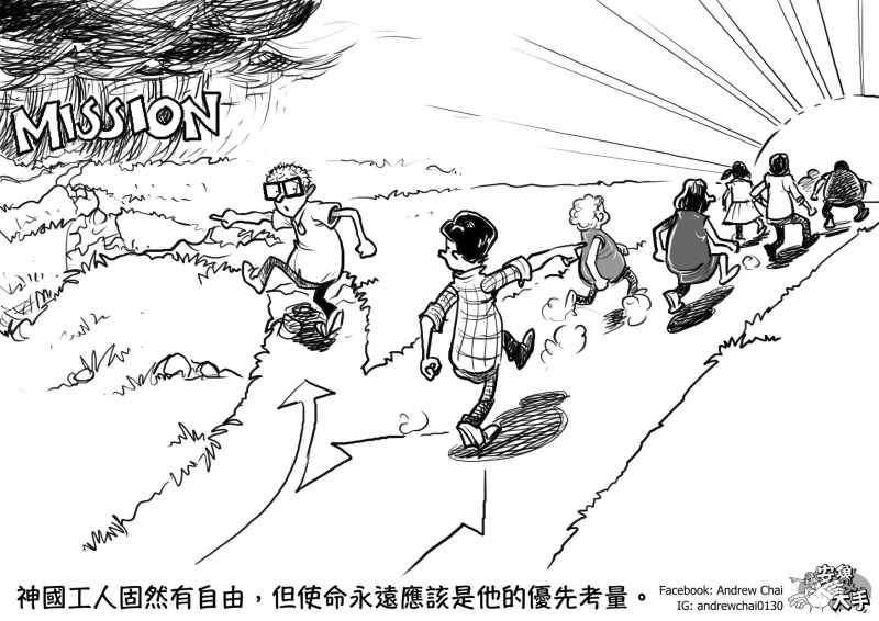 說穿了,關於《聖經》沒清楚說明的許多事,我們實在無法列一個簡明的清單,指出什麼可以做、什麼不可以做,這些標準都會因地方文化、或當下的處境而有所改變。但是,「為了福音」、「為了多得人」、「為了將來永恒的獎賞」,就是最大的標準。宣教工人可不可以染髮?在特定的環境中可能不行,但在另一些地方,卻可能變成了一個必須,關鍵是「為了福音」。宣教工人講道要不要穿西裝打領帶?在特定文化中可能是必須,在另一些環境中卻可能是禁忌,「為了福音」我們願意穿,也願意不穿。宣教工人可以吃野味嗎?一般情況下大部分人也許不吃(這次的新冠肺炎疫情更讓許多人害怕),但在特定的宣教工場和場合中,或許我們要「為了福音」的緣故而有所嘗試……無論如何,我們都可以自主作選擇,也可以用口才把那些質問和批評我們的人駁得心服口服,可是萬一這樣做成了福音的阻礙,就不是真自由。