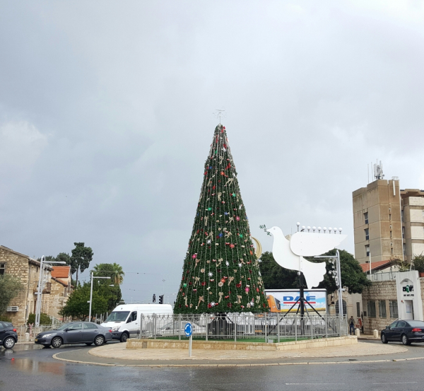 海法市每年慶祝一個叫 holiday of holidays 的節日,慶祝聖誕節(海法有阿拉伯基督徒)和修殿節。這個是在靠海法港的一個交通迴旋處的裝飾,有和平鴿造型的chanukiah.