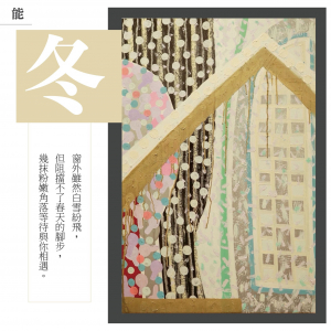 從動彈不得到再度拾起畫筆,是一種脫離苦路的重生!心中想畫的主題就是「四季」。人生有四季,有消有長,有甘有苦。四季代表自然與心境各種不同變化的面貌,用色彩串連,個別獨立但又有關係的延續與循環。