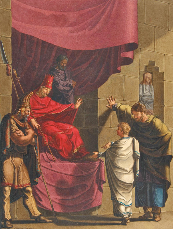 http://www.metmuseum.org/art/collection/search/382751 但以理為尼布甲尼撒王解夢。 (Franz von Hauslab the Younger創作)