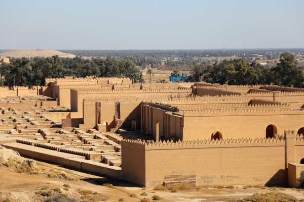 海珊曾自許是「復活的巴比倫王尼布甲尼撒」,成就了傲視中東的龍頭霸業。上世紀八○年代,他雄心萬丈試圖耗巨資在原址全面重建巴比倫城,所有宮殿、空中花園都在計劃之列,並且效法尼布甲尼撒留名於千萬磚石上。然而戰事頻仍,使重建工程一直擱置停擺。今日僅有一小部分城牆和廣場突兀的留在古城故址的地面上。戰爭年代,美軍為了建造直昇機基地,部分考古遺址甚至被夷為平地。