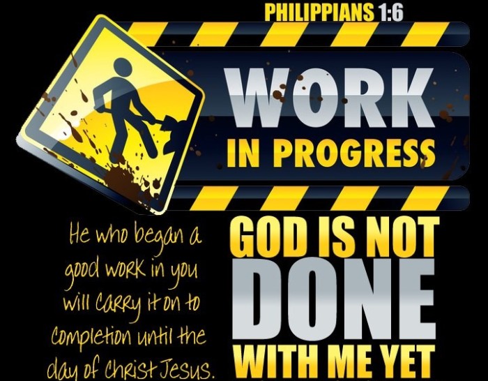 一如會堂眼下的雜亂只是過程,至終仍要竣工啟用,我們作為上帝在基督耶穌裡的工作,更是如此(以弗所書2章10節)。以弗所書這卷教會書信明確指出上帝的旨意與作為,叫我們這些若按著肉體便與聖約無關的外邦人,如今卻靠著基督耶穌的血得以親近上帝,與上帝和好,與聖徒同國。我們與以色列人同被建造在使徒和先知的根基上,以基督為房角石,因著基督的同在,和眾聖徒一同明白基督的愛是何等長闊高深。