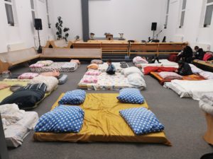 不過現在,來過夜的主要是自烏克蘭南部過來的婦女和兒童。當他們到達時,「神的形像」教會爲他們提供膳食、衣服和個人護理用品。由於建築中沒有淋浴設備,教會成員開放了他們的家。(奇薩里指出,如果你在車裡待了30個小時,你很顯然非常需要洗個澡。)