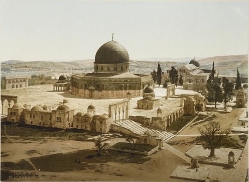 在19世紀末20世紀初,聖殿山和岩石圓頂的北方景象。來自賓夕法尼亞大學圖書館的Lenkin家族攝影收藏、Pritzker家族國家攝影收藏和以色列國家圖書館。