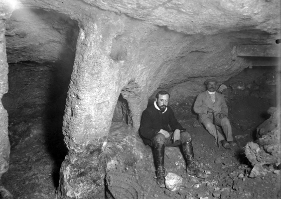 情緒低落的瓦爾特·尤韋利烏斯坐在考古探險中挖掘出的一個地下室裡。這張照片發表於羅尼·雷希(Ronny Reich)的《挖掘大衛城:耶路撒冷歷史的起源》(以色列考古學會,2011年)一書中。
