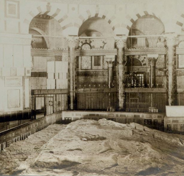基石位於穹頂岩內,19世紀末20世紀初。這個圖片是以色列檔案網絡的一部分,感謝Yad Ben Zvi檔案、耶路撒冷和遺產部以及以色列國家圖書館的合作努力,使之可以被公開取用。