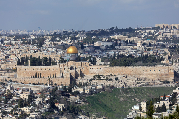 在19世紀末20世紀初,聖殿山和岩石圓頂的北方景象。來自賓夕法尼亞大學圖書館的Lenkin家族攝影收藏、Pritzker家族國家攝影收藏和以色列國家圖書館。