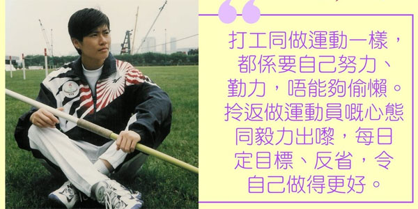 可能有田徑的背景,又是划艇運動的香港代表,而且成績又不是最突出,不易惹人記憶吧! 我曾獲提名參加「傑出運動員」選舉,只惜從未得此殊榮,但卻當選了千禧年的「香港十大傑出青年」。回想過去在運動場上所走過的路,發覺我根本不算是擁有運動天份的人,所得的一切成就,都是靠後天不斷努力付出才得到的。所以,我萬分珍惜所取得的勝利,然而更珍惜是在失敗中所學習的積極進取,不輕易放棄的態度。這也成為我了我的使命,一個運動員、一個基督徒的使命。