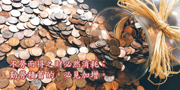 不勞而得之財必然消耗;勤勞積蓄的,必見加增。