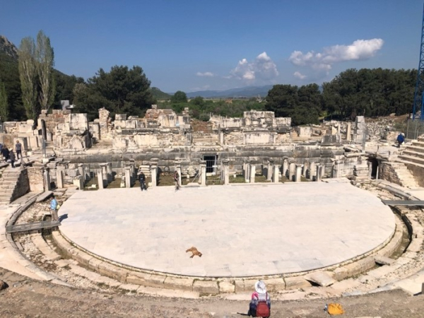 我也在以弗所古城的劇場中留影並高歌,依稀可以追想保羅當年,被亞底米女神的狂熱信徒公審的景象,可惜未能找到推喇奴學房的遺跡,只能從圖書館略微領略當時的面貌。
